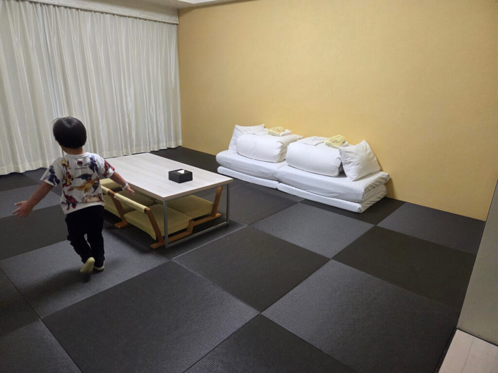😴今回は畳の部屋にマットレスのお部屋だったので、子どもたちがベットから落ちる・・・などの心配がなかった。