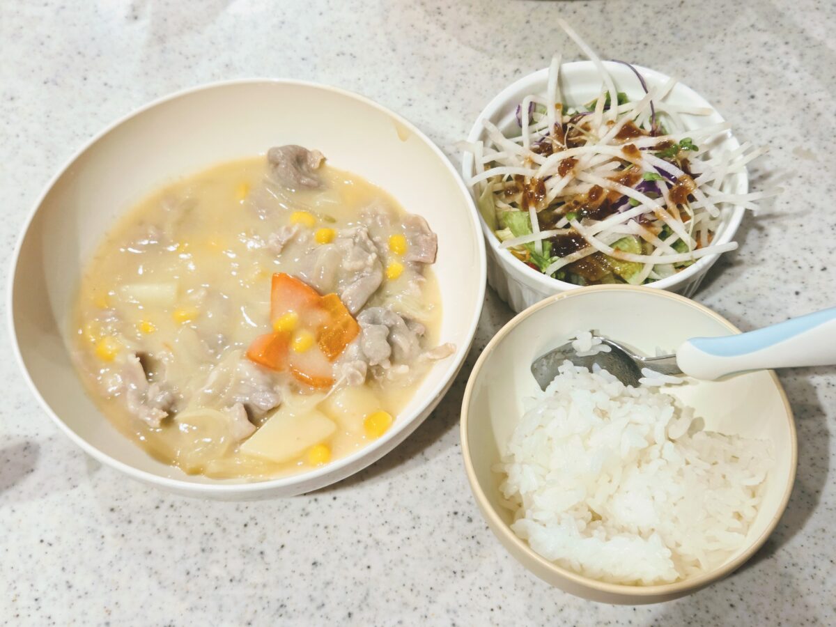 市販のシチュールーです!箱通りに作って、最後に冷凍コーンを入れて完成✨